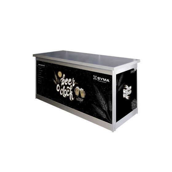 SYMA-RONDO Ausschanktische Die SYMA-RONDO Ausschanktische bestechen durch ihre hohe Robustheit. Durch die widerstandsfähige Klapptecknik sind sie sehr gut geeignet für den häufigen Gebrauch. Schnell und einfach mit wenigen Handgriffen aufgestellt sowie platzsparend wieder eingelagert. Dank der grossen Front ist viel Platz für Ihre Werbung vorhanden.