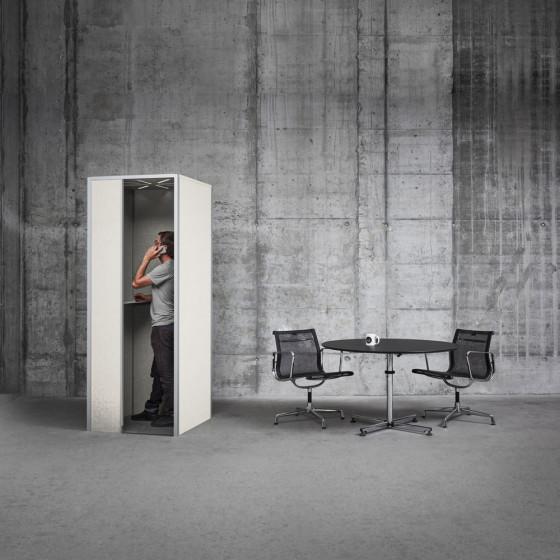 Im Open Office geht die alltägliche Kommunikation weit über die Grenzen des physischen Arbeitsplatzes hinaus. Die EchoBox® Telefonzelle sorgt für Privatsphäre und weniger Störgeräusche. Ein Raum im Raum, ideal für kurze und fokussierte Gespräche im Stehen oder Sitzen. Dank integriertem höhenverstellbarem Tisch finden auch Dokumente oder Laptops ihren Platz. Die Pop-Up Zelle kann ohne Werkzeuge zusammengebaut werden, sie besteht aus nur sieben Teilen und wiegt knapp 40kg.