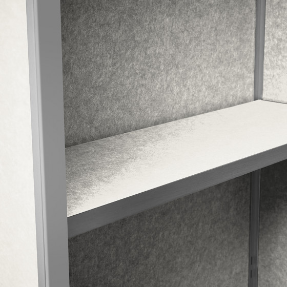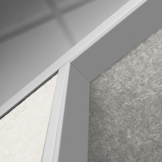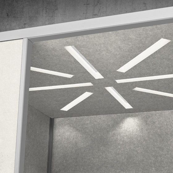 Alu natur eloxiert, Wände aus recycelten PET-Akustikplatten