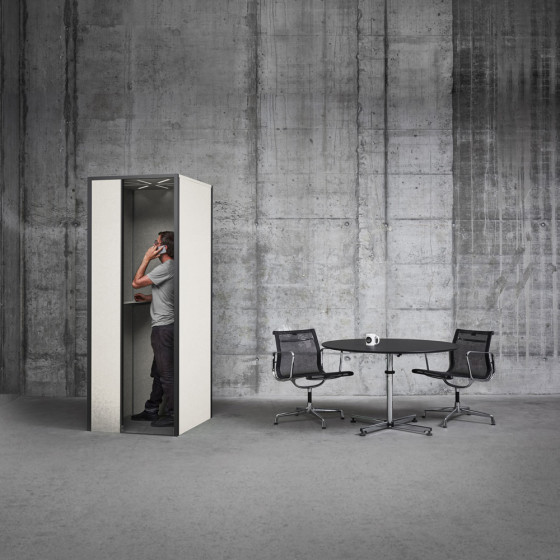 Im Open Office geht die alltägliche Kommunikation weit über die Grenzen des physischen Arbeitsplatzes hinaus. Die EchoBox® Telefonzelle sorgt für Privatsphäre und weniger Störgeräusche. Ein Raum im Raum, ideal für kurze und fokussierte Gespräche im Stehen oder Sitzen. Dank integriertem höhenverstellbarem Tisch finden auch Dokumente oder Laptops ihren Platz. Die Pop-Up Zelle kann ohne Werkzeuge zusammengebaut werden, sie besteht aus nur sieben Teilen und wiegt knapp 40kg.
