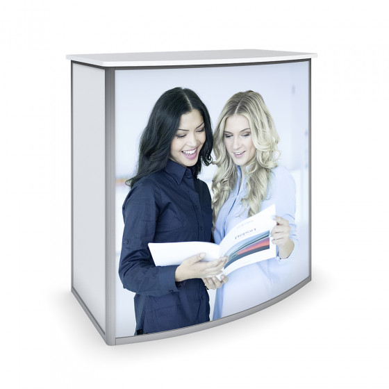 Das SYMA-DECO Thekensystem ist in den verschiedensten Varianten lieferbar. Die Theken lassen sich leicht transportieren, sind im "Handumdrehen" aufgebaut und nach der Präsentation wieder vollständig zusammenklappbar. Optimal in Kombination mit kundenspezifischer Grafik.
