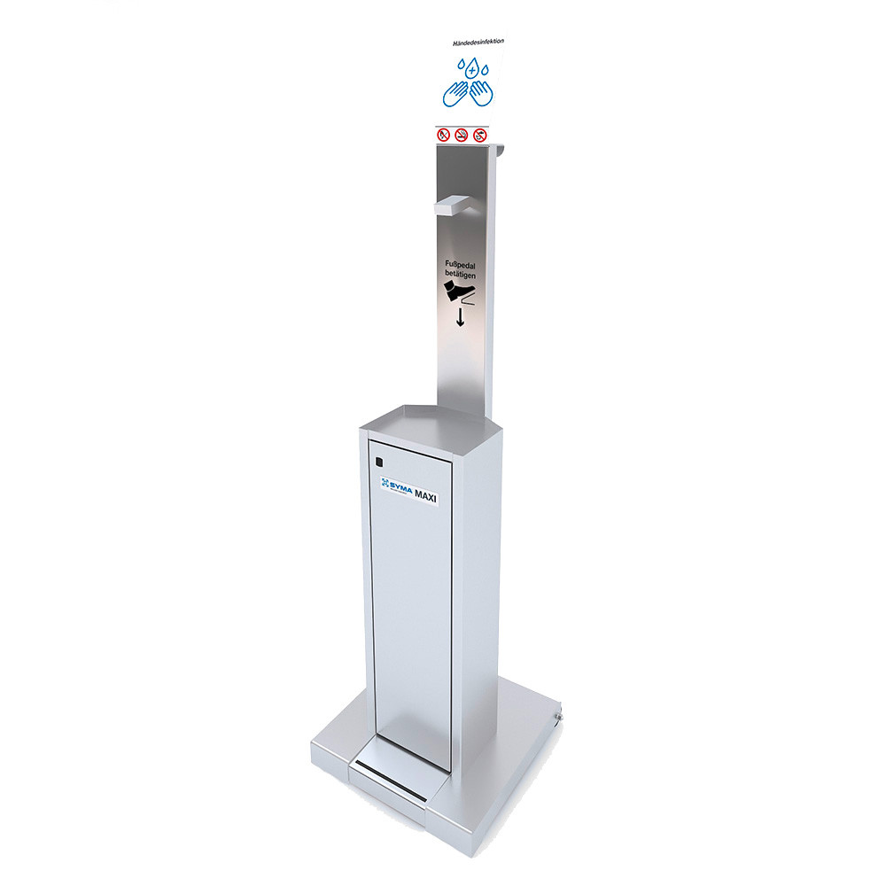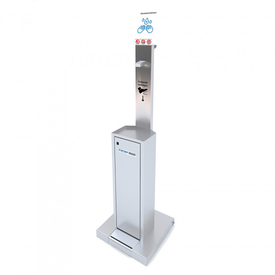 Die Desinfektionssäule Maxi, mit dem bemerkenswerten fünf Liter Tank, bietet Handhygiene für bis zu 3ʼ200 Anwendungen.